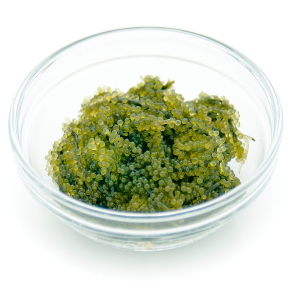 ●海ぶどうは沖縄の海で育つ海藻で、プチプチした食感と鮮やかな緑が特徴